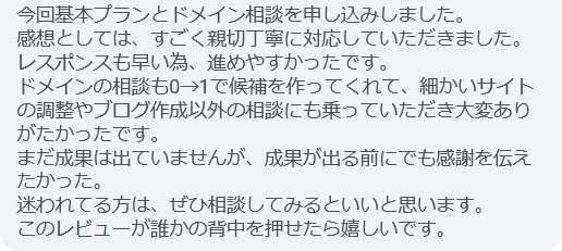 購入プラン:サイト作成代行基本プラン+ドメイン相談