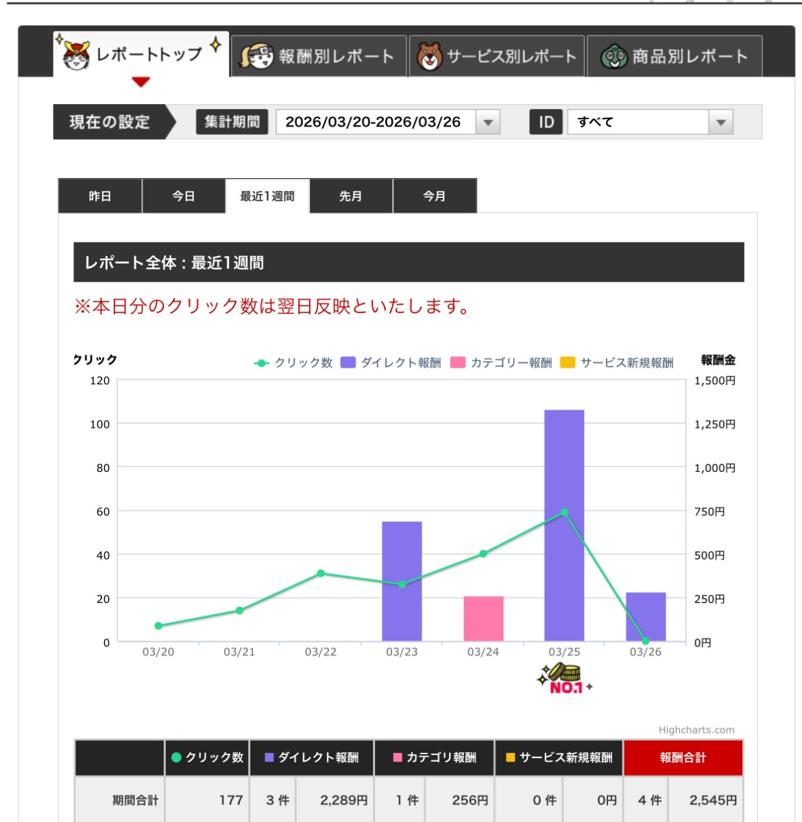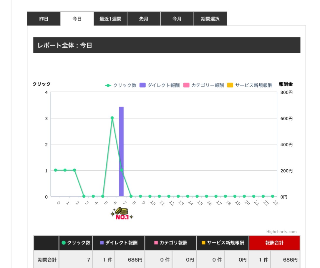 初報酬を上げている方々は皆さんダイレクト報酬がほとんどであることから、少ないアクセス数でもしっかりとクリックされ購入されているのが分かります。